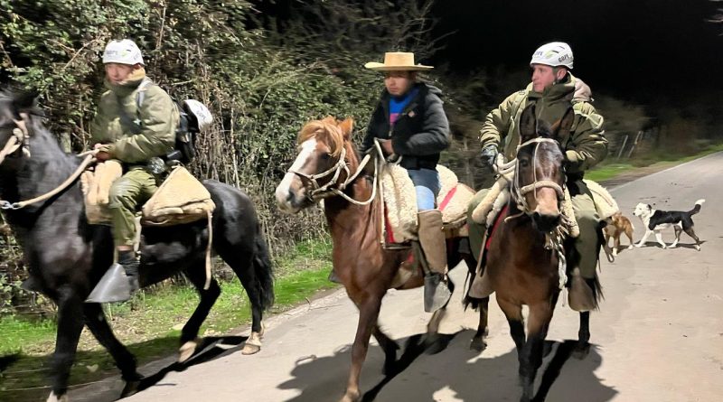 Efectivos policiales especializados del GOPE y arrieros del sector, llegaron en caballares al sector. Previamente un helicóptero de la Prefectura